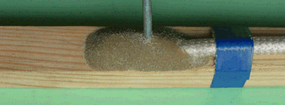 кабеля заливается эпоксидной смолой и присыпается от ее растекания мелким речным песком, позже покрывается краской
